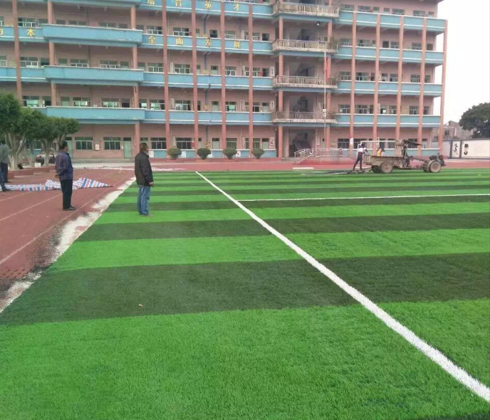 廣東省東莞市企石鎮新域學校場地完工圖如下,綠達可以根據您的要求來定做草坪參數。